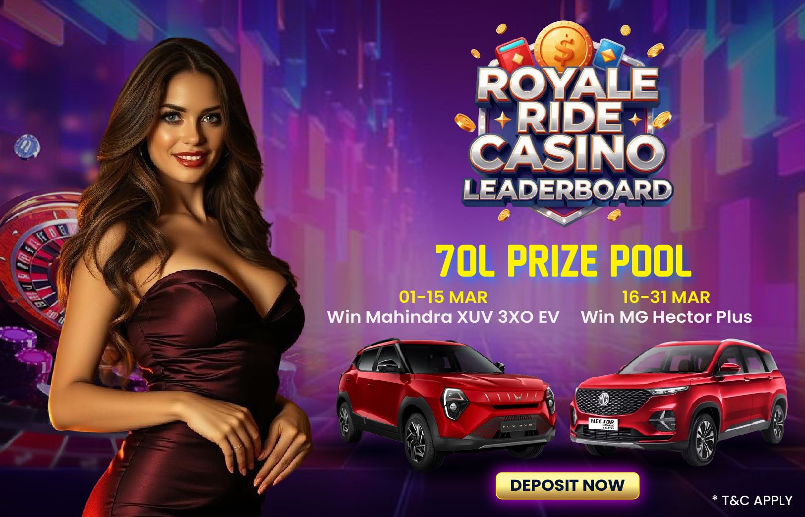 Get ready for the ultimate winning streak with the Royale Ride Casino Leaderboard! Grab your share of the massive ₹70L Prize Pool from 1st to 31st March.