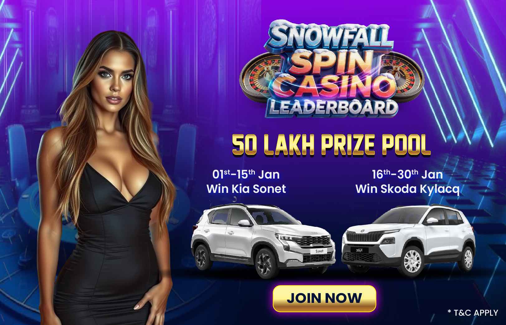 Kickoff the new year with massive wins! Play your favourite casino games for a chance to grab rewards from the ₹50 Lakh Prize Pool and drive home a brand-new Kia Sonet from 1-15 Jan.